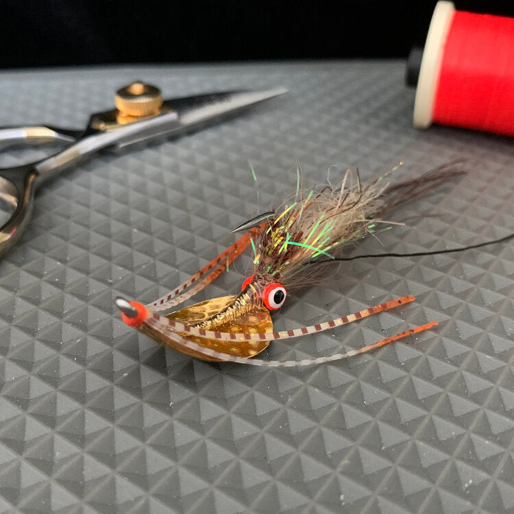 The combination of successful shrimp patterns and a crab shell has resulted in the creation of the Shrimpadillo - a top-performing fly for Redfish. This one-of-a-kind design is not available at any other fly shop and is the result of extensive discussions and experimentation at the vise.
