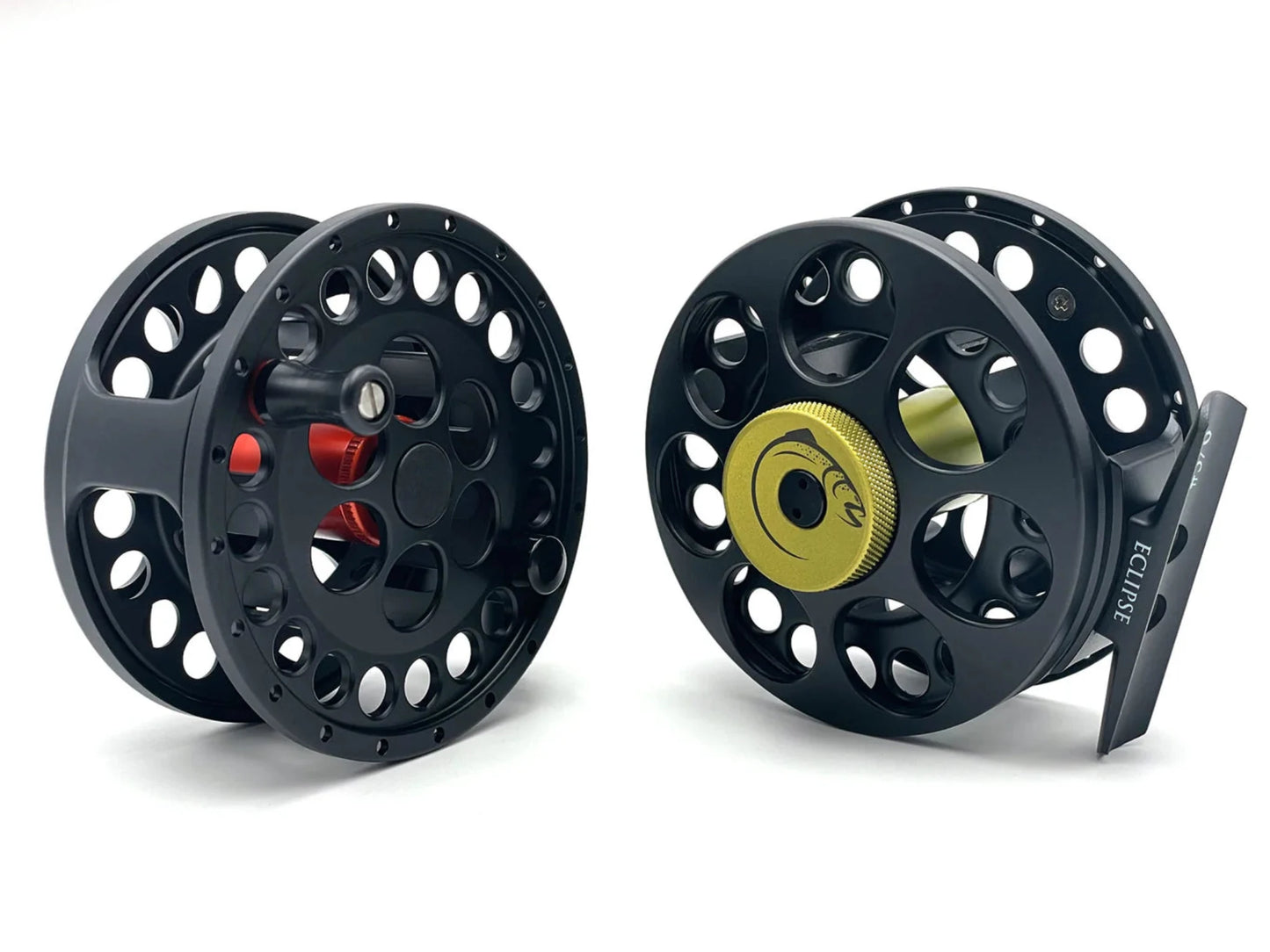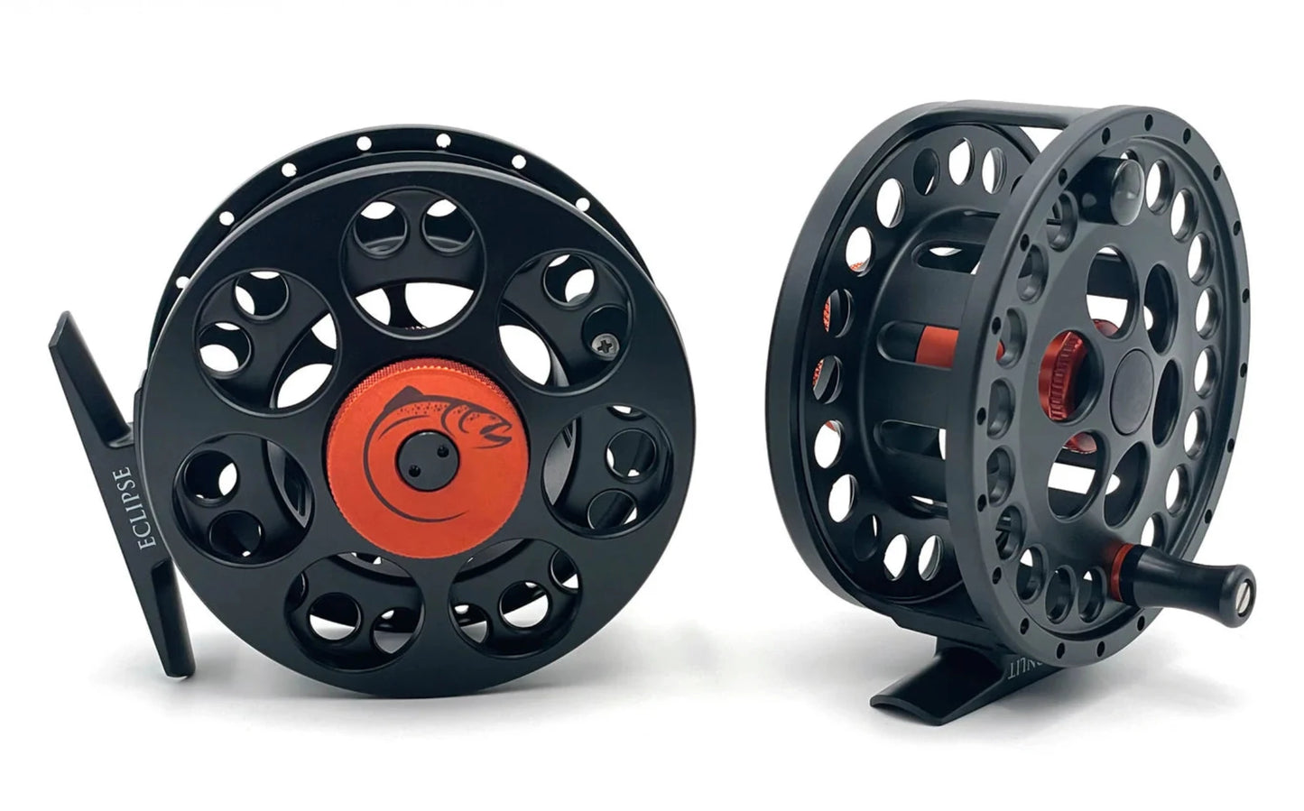 The Eclipse Reels are a machined die-cast reel with a smooth, sealed, drag system that consists of stainless steel and carbon discs. The drag one turn adjustment knob is also fully machined. These reels have more than enough room to take backing with any suitable fly line. With all this the Eclipse gives you the highest performing reel for a real value that will put your mind at ease. Pick from the two different color choices of Light Olive/Matte Black or Burnt Orange/Matte Black.